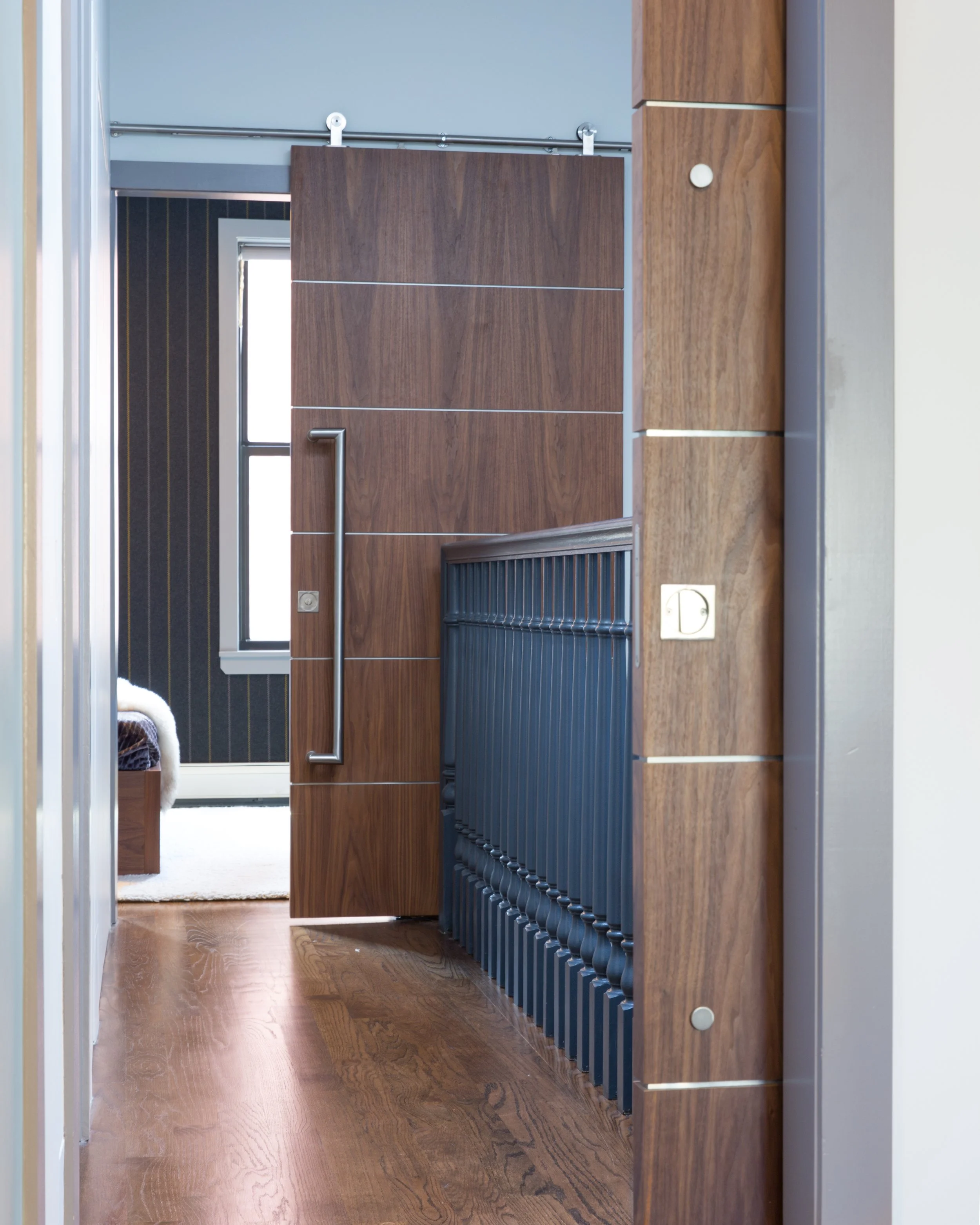 A narrow townhouse located in a gated and private block in Harlem, this historic home needed some updates. We were able to add clean lines and masculine touches throughout to keep it simple but also elevated. The traditional white baseboards and balusters where upgrade and also painted with a bolder darker color, leaving the typical white baseboards behind. Wool handmade wall coverings were used in the Master Bedroom to add height with their vertical stitching pattern as well as creating a year round cozy space.
