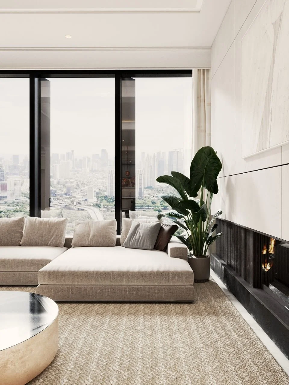 A modern sanctuary in the sky, this three-bedroom residence at Rajawali Place merges American sophistication with Indonesian modernism. Soft layers of marble flooring ground the interior’s clean architecture, while bespoke furniture and a Minotti sofa create an inviting balance of comfort and precision.
